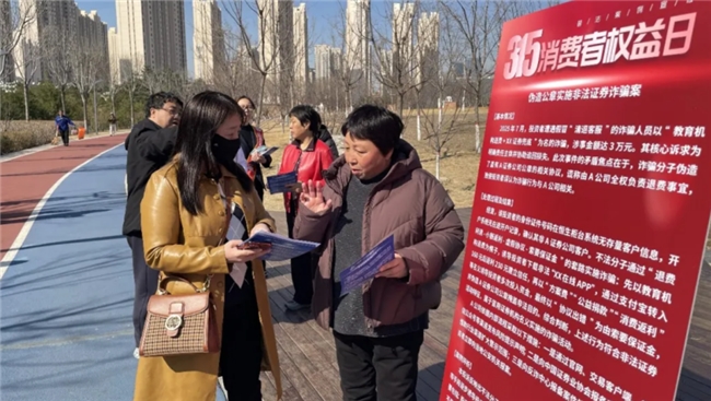 漫步在龙城公园的主要步道上,市民们惊喜地发现,原本单调的健步路线变成了流动的“金融课堂”。两处主题宣传点沿步道设立,图文并茂的金融知识展板、通俗易懂的宣传手册、专业耐心的工作人员,让防范非法证券活动的知识变得触手可及。