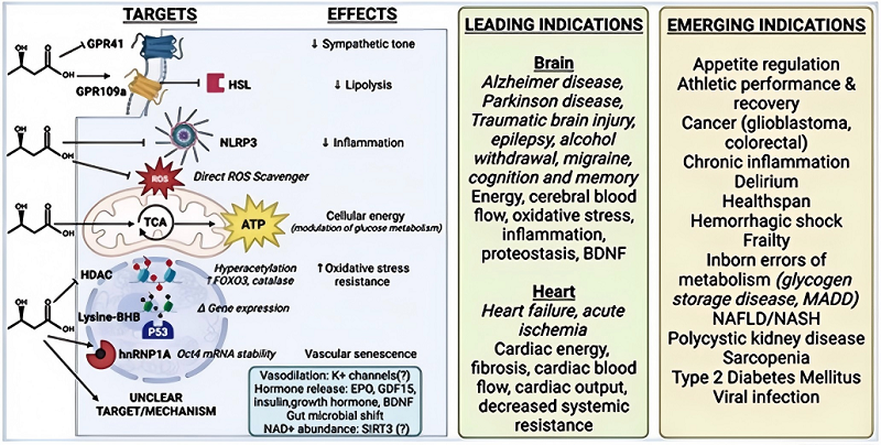 贝塔酸(D3HB)作为人体天然存在的酮体,被学界誉为除碳水化合物、蛋白质、脂肪以外的“第四种宏量营养素”,是脑、心肌等高耗能器官应对能量危机的关键代谢底物。《自然》、《科学》等国际顶级期刊研究证实,贝塔酸具备穿透血脑屏障高效供能、可调节表观遗传,抑制HDAC、促进组蛋白β-羟丁酰化、显著增加脑源性神经营养因子(BDNF)的生成、调控神经可塑性等作用,兼具能量供给与分子调控双重功能。临床前与临床研究显示,其在认知改善、情绪调控、睡眠改善以及阿尔茨海默病、帕金森病、心力衰竭、多发性硬化症等疾病干预中,展现出神经保护、髓鞘修复、代谢调节等潜力,已成为斯坦福、哈佛、剑桥、巴克衰老研究所等顶尖学府机构脑健康与抗衰老核心研究方向。