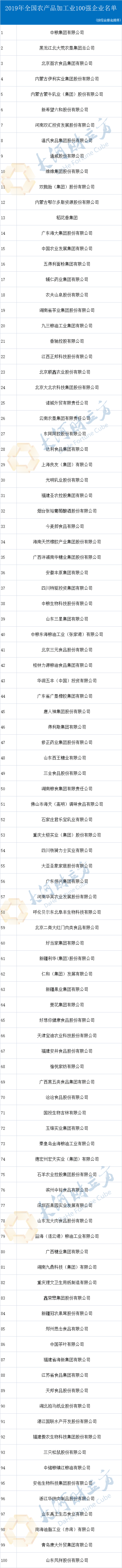1月7日,农业农村部发布2019年全国农产品加工业100强企业名单公示。在企业自愿申报基础上,经专家从经营规模、科技创新与品牌建设、社会贡献、增长态势四方面综合评审,拟将中粮集团有限公司等确定为2019年全国农产品加工业100强企业。其中,涉及河南企业的有河南双汇投资发展股份有限公司、辅仁药业集团有限公司 、三全食品股份有限公司、河南华英农业发展股份有限公司 、好想你健康食品股份有限公司、郑州思念食品有限公司等6家。