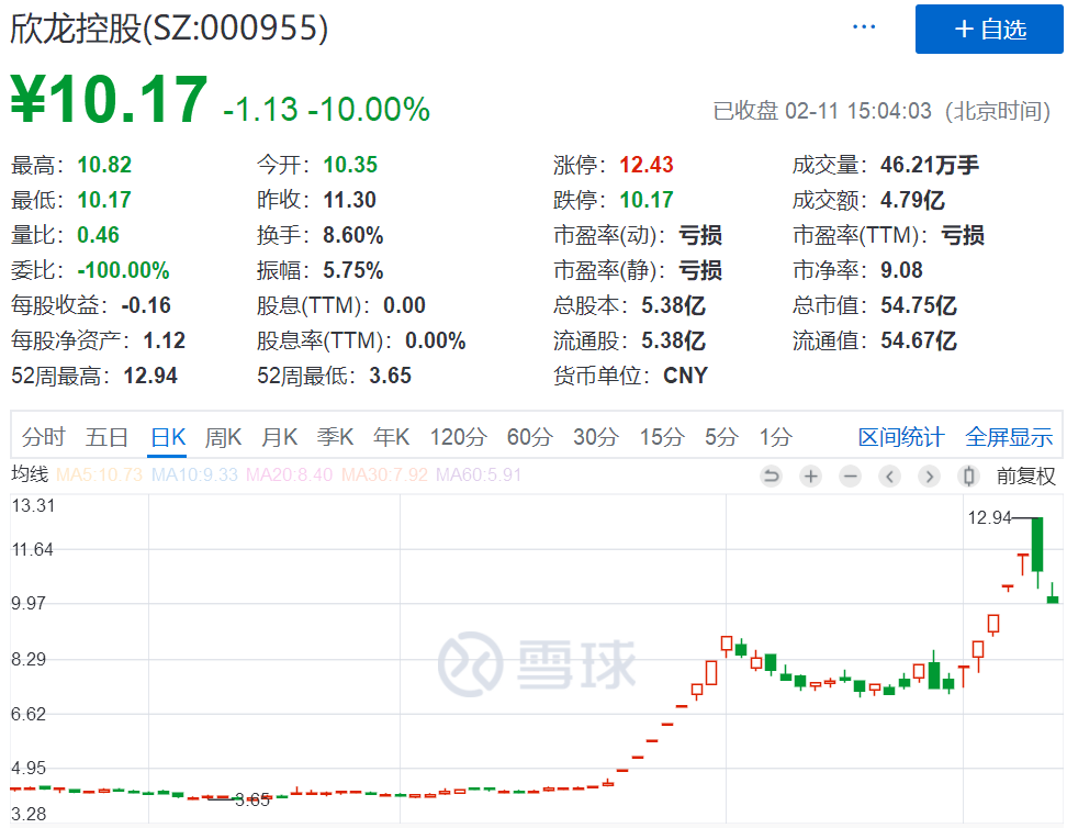 但当天,欣龙控股股价突然被按下“暂停键”,巨额资金从涨停板上出逃,单日暴跌近14%、盘后,其5名高管集体抛出减持计划,拟合计减持70.25万股。